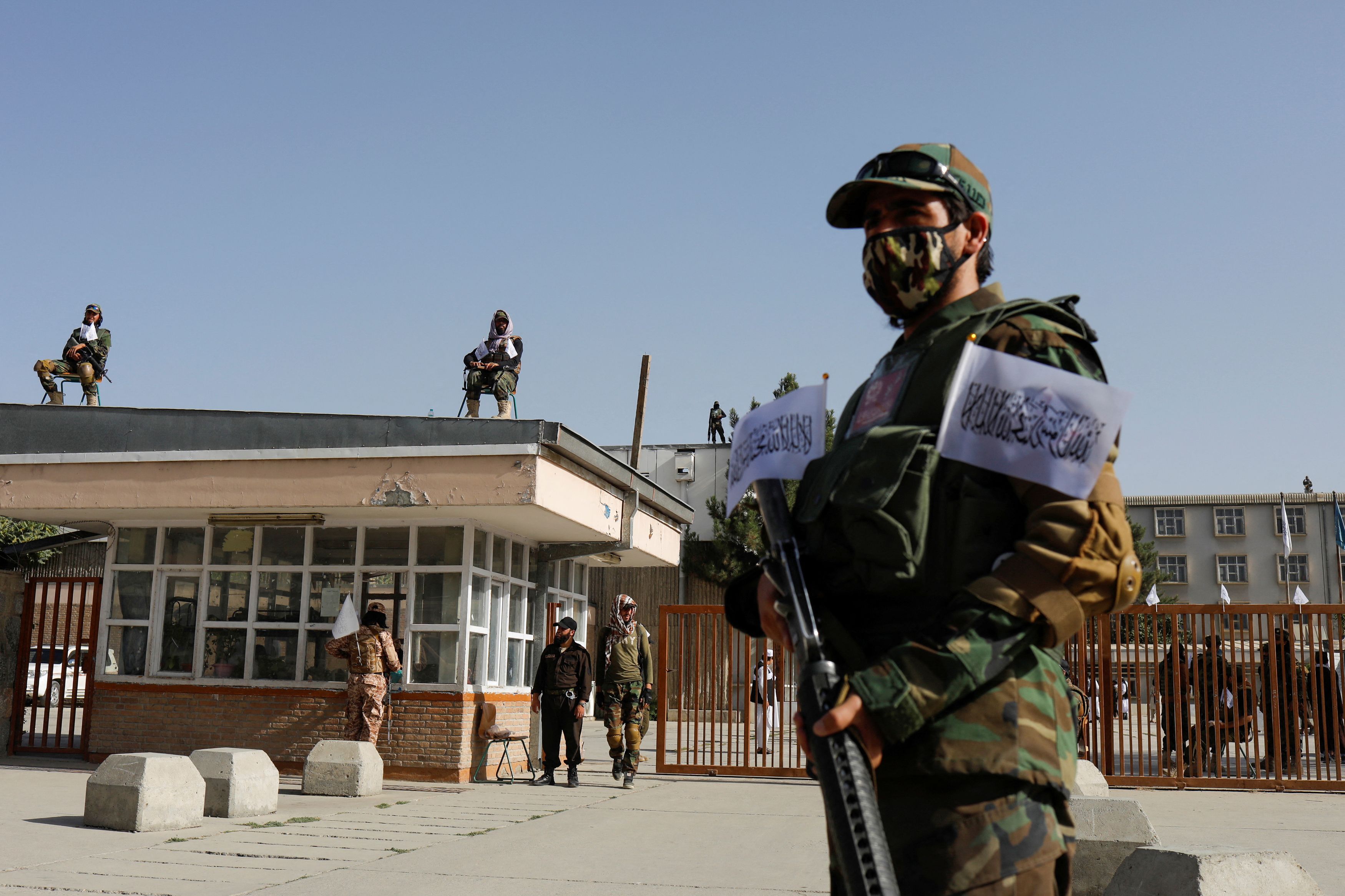 Οι ασπρόμαυρες σημαίες του Ισλαμικού Εμιράτου του Αφγανιστάν, ονομασία που ξανάδωσαν στη χώρα οι νέοι ηγέτες της, κυμάτιζαν στα σημεία ελέγχου ασφαλείας στην πρωτεύουσα, που κατελήφθη στις 15 Αυγούστου του 2022, όταν κατέρρευσε η υποστηριζόμενη από τις ΗΠΑ κυβέρνηση και οι επικεφαλής της εξορίστηκαν.