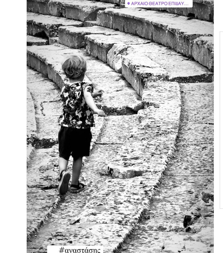 Αυτές τις ημέρες βρέθηκαν στο αρχαίο θέατρο της Επιδαύρου και φυσικά ο ηθοποιός τράβηξε αναμνηστικές φωτογραφίες. Oι δυό τους απολαμβάνουν ο ένας την παρέα του άλλου, ενώ ο μικρός Αναστάσης ζει από κοντά και τη διαδικασία των προβών του ηθοποιού.