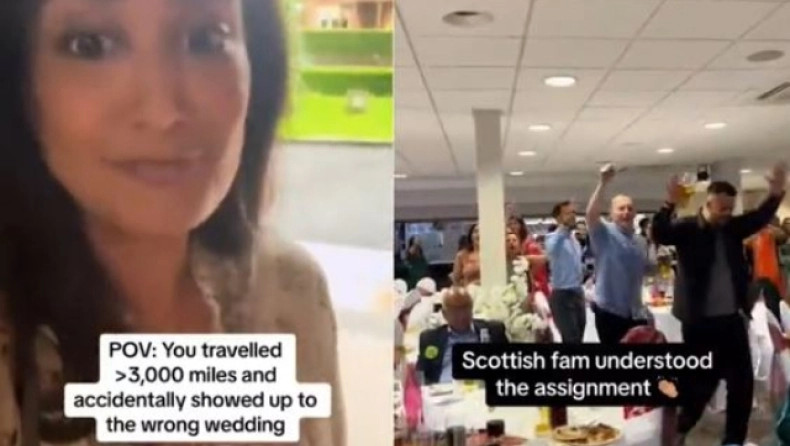 Μάλιστα, έδειξε να διασκεδάζει με το «λάθος» ζευγάρι την γκάφα της, ενώ όταν ανέβασε το βίντεο, ευχαρίστησε την Caitlin και τον Stephen που την κέρασαν ποτό στον γάμο τους και σεβάστηκαν την περιπέτειά της.