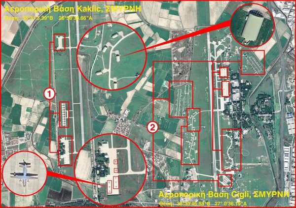 Οι δυο αεροπορικές βάσεις της Σμύρνης που, με άλλες γειτονικές, είναι έτοιμες να δράσουν μαζί με το τουρκικό ναυτικό σε βάρος των νησιών του Αιγαίου