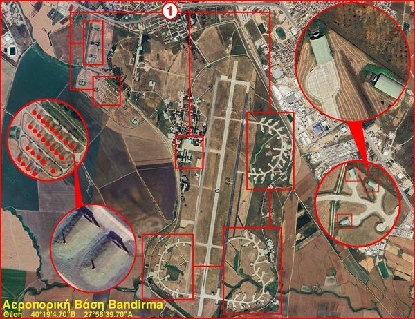H τουρκική πολεμική αεροπορία διαθέτει, μεταξύ άλλων, τα εξής στρατηγικά σημεία, που συνδέονται με τις απειλές εναντίον της Κύπρου και της Ελλάδας: