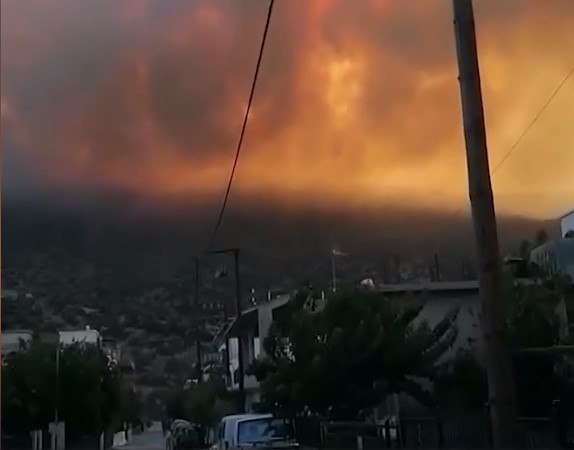 Το μέτωπο της φωτιάς είναι μεγάλο και εξαπλώνεται γρήγορα, με τους πολύ ισχυρούς ανέμους να προκαλούν ανησυχία στην πυροσβεστική.