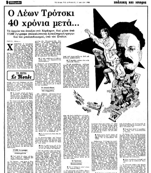 Χάρβαρντ, 2 Ιανουαρίου 1980. Τη μέρα εκείνη συνέβη ένα γεγονός που το περίμεναν ανυπόμονα όλοι όσοι ενδιαφέρονται για την επαναστατική ιστορία του 20ού αιώνα: ανοίχτηκε το πλήρες αρχείο του Λέοντος Τρότσκι. Ή, ακριβέστερα, το τμήμα εκείνο του αρχείου του που είχε παραμείνει «κλειστό», σύμφωνα με την επιθυμία του μεγάλου επαναστάτη, όλα αυτά τα σαράντα χρόνια που μεσολάβησαν από τη μέρα της δολοφονίας του. Ο Γάλλος Πιερ Μπρουέ, που θεωρείται από τους ειδικούς σαν ο μοναδικός πραγματικός ιστορικός του Τρότσκι και διευθύνει τις δραστηριότητες του «Ινστιτούτου Λέοντος Τρότσκι» του Παρισιού, πήγε στο Χάρβαρντ και ενημερώθηκε γι’ αυτά τα ντοκουμέντα, που ρίχνουν φως πάνω σε ορισμένες ελάχιστα γνωστές ακόμα απόψεις της ιστορίας του μπολσεβικισμού. Σε συνέντευξή του προς τη «Μοντ» ο Πιέρ Μπρουέ είπε: