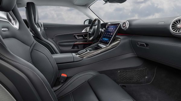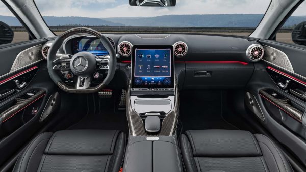 Στα πρότυπα των νεότερων Mercedes υπακούει και η ψηφιακή εικόνα του εσωτερικού όπου παρεπιδημούν ένας ψηφιακός πίνακας οργάνων 12,3 ιντσών και μια κάθετου προσανατολισμού οθόνη 12,8 ιντσών για το infotainment. Στο βασικό εξοπλισμό ανήκει το σπορ τιμόνι AMG Performance ενώ οι μελλοντικοί ιδιοκτήτες της μπορούν να επιλέξουν επίσης σπορ καθίσματα της ίδιας εξοπλιστικής συνομοταξίας αλλά και από ένα ευρύ φάσμα επιλογών που περιλαμβάνουν από περισσότερο ανθρακόνημα στο εσωτερικό έως αναβαθμίσεις στο πλαίσιο και carbon κεραμικά δισκόφρενα.
