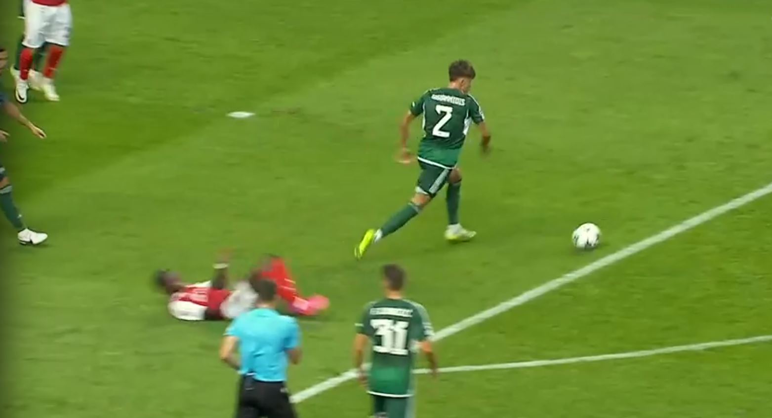Ο διαιτητής της αναμέτρησης Μπράγκα – Παναθηναϊκός, Φέλιξ Τσβάιερ καταλόγισε πέναλτι υπέρ της πορτογαλικής ομάδας μετά από σύγκρουση του Βαγιαννίδη με τον Μπρούμα, αλλά τελικά πήρε πίσω την απόφαση του μετά από εξέταση της φάσης στο VAR.