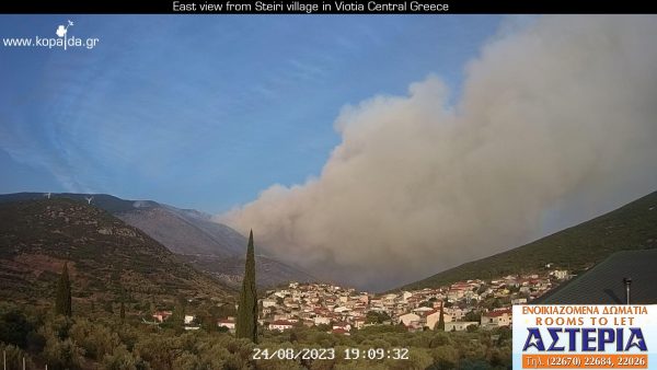 Δείτε πώς έχει η κατάσταση με το πύρινο μέτωπο από κάμερα στο Στείρι Βοιωτίας.