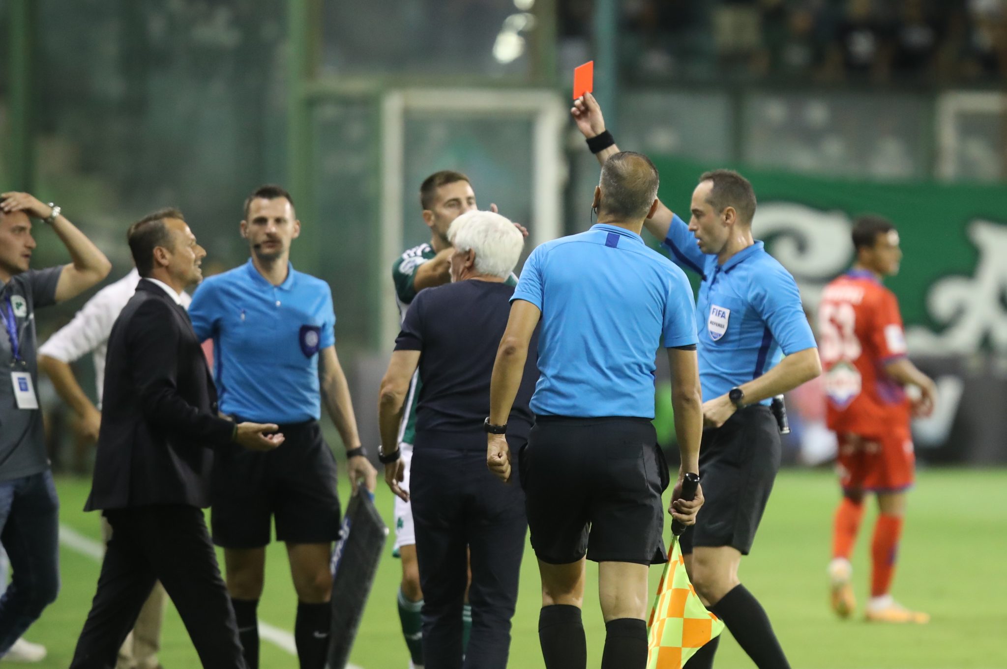 Εκτός από το «κιτρίνισμα» του Ολλανδού, ο διαιτητής απέβαλλε επίσης τους Γιάννη Παπαδημητρίου και Σπύρο Βλάχο, οι οποίοι διαμαρτυρήθηκαν έντονα στον πάγκο του Τριφυλλιού. Αποφάσεις που προκάλεσαν την οργή του Παναθηναϊκού, με την πράσινη ΠΑΕ να αναφέρει σε ανάρτησή της στο Twitter.