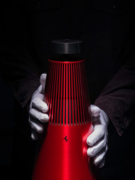 Το Beosound 2 προσφέρει μια εμπειρία οικιακού ήχου διασποράς 360 μοιρών που γεμίζει κάθε χώρο στον οποίο βρίσκεται. Ο σχεδιασμός του είναι ευέλικτος ώστε να τοποθετείται στο δάπεδο, σε τραπέζι ή ράφι και μπορεί να μετακινηθεί εύκολα από δωμάτιο σε δωμάτιο. Το Active RoomSense και οι ενσωματωμένοι αισθητήρες εγγύτητας ταιριάζουν με την ομορφιά του Beosound 2 με την έξυπνη τεχνολογία, ενώ ένας υψηλής ποιότητας κώνος αλουμινίου που φιλοξενεί το ηχείο παρέχει μοναδική εμφάνιση και εξαιρετική ακουστική. Το Beosound 2, στη συλλογή της Ferrari, παράγεται στο εργοστάσιο 5 της Bang & Olufsen στο Struer, αυτή τη φορά βάζοντας στη σχεδίαση το διάσημο κόκκινο της μάρκας. Το σώμα από αλουμίνιο δίνει υψηλή λάμψη, ενισχύοντας τον πλούτο της κόκκινης απόχρωσης. Το μυθικό έμβλημα της Ferrari βρίσκεται κάτω από τη γρίλια, ολοκληρώνοντας αυτήν την έκδοση.
