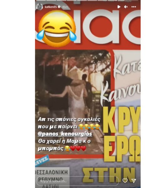 «Συγγνώμη που θα σας το χαλάσω, αλλά είναι ο… αδελφός μου!» έγραψε η Κατερίνα Καινούργιου ενώ σε ένα δεύτερο story της συμπλήρωσε χιουμοριστικά: «Από τις σπάνιες αγκαλιές που με παίρνει. Θα χαρεί η μαμά και ο μπαμπάς».