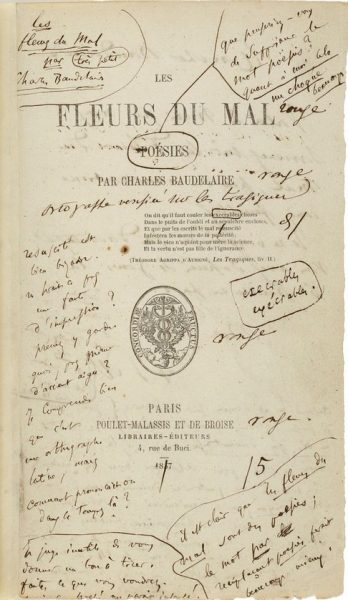 Στις 25 Ιουνίου του 1857 «το πιο ένδοξο βιβλίο της γαλλικής ποίησης», «Τα Άνθη του Κακού» του Σαρλ Μπωντλαίρ, εκυκλοφόρησε στην Αλανσόν, επαρχιακή πόλη της Γαλλίας, από τον Ωγκύστ Πουλέ-Μαλασσί, τον γνωστό εκδότη, που έκτοτε εσύνδεσε το όνομά του με τη φήμη, με την περιπέτεια και με τη δόξα του ποιητή της Γαλλίας.