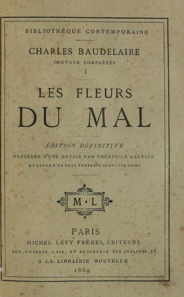 Την 1η Ιουνίου του 1855 η «Επιθεώρησις των δύο κόσμων» δημοσιεύει για πρώτη φορά δεκαοκτώ ποιήματα υπό τον τίτλο Les Fleurs du Mal. Το περιοδικό, σα να υποπτευόταν το σκάνδαλο που θα ξεσπούσε αργότερα, συνόδευε τη δημοσίευση των ποιημάτων με το ακόλουθο σχόλιο: