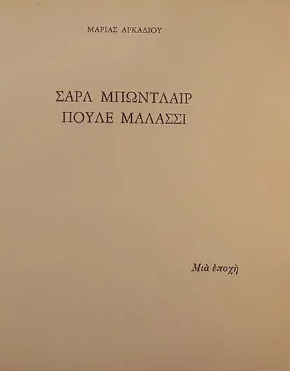 Το 1968 είχε κυκλοφορήσει στην ελληνική αγορά ένα ενδιαφέρον βιβλίο για τον Μπωντλαίρ, που είχε συγγράψει η Μαρία Αρκαδίου (1917-1996) και έφερε τον τίτλο «Σαρλ Μπωντλαίρ – Πουλέ Μαλασσί» (ο Πουλέ-Μαλασσί, 1825-1878, ήταν γάλλος τυπογράφος, στενός φίλος του Μπωντλαίρ και εκδότης του).