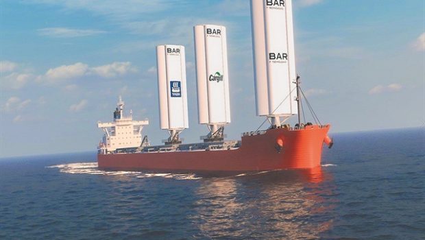Η BAR Technologies σε συνεργασία με τη Mitsubishi Corporation παρουσίασε το πρώτο φορτηγό πλοίο που είναι εξοπλισμένο με γιγαντιαία αιολικά ιστία.