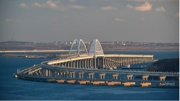 Η γέφυρα από μπετόν, μήκους κάπου 18 χιλιομέτρων, που εγκαινίασε προσωπικά ο πρόεδρος Πούτιν το 2018, αποτελείται από δυο παράλληλες δομές, στη μια από τις οποίες κινούνται αυτοκίνητα και στην άλλη τρένα. Η Κριμαία πλήττεται συχνά από τον ουκρανικό στρατό.