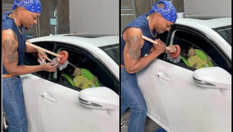 Στο βίντεο που έχει ανέβει στο TikTok, ο άνδρας στέκεται μπροστά από την κλειδωμένη πόρτα του αυτοκινήτου όπου στο κάθισμα υπάρχει ένα μωρό-κούκλα. Σκοπός του είναι να δείξει τον τρόπο με τον οποίο μπορεί να σώσει το μωρό που είναι κλειδωμένο μέσα στο αυτοκίνητο.