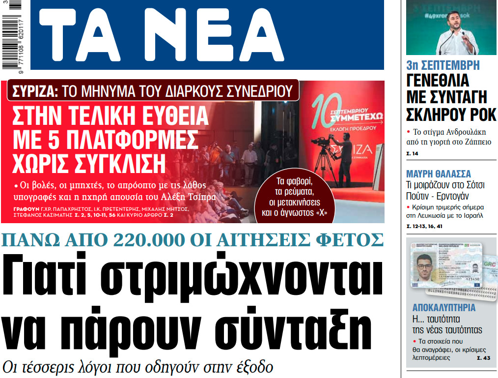 Στα «ΝΕΑ» της Δευτέρας: Γιατί στριμώχνονται να πάρουν σύνταξη