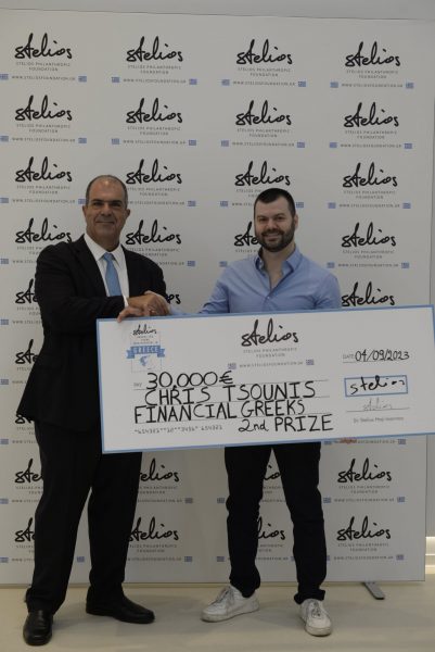 Το δεύτερο έπαθλο, ύψους € 30.000, έλαβε ο youtuber Χρήστος Τσούνης για την εταιρεία του Financial Greeks. Πρόκειται για μια πρωτότυπη πλατφόρμα digital marketing και influencing με στόχο την ενίσχυση της χρηματοοικονομικής και επενδυτικής κουλτούρας στην Ελλάδα. Η εταιρεία με παρουσία σε όλα τα κορυφαία μέσα κοινωνικής δικτύωσης, όπως YouTube, Facebook, Instagram, LinkedIn, Twitter, Discord, Telegram, Medium, μετρά περισσότερες από 3,5 εκατ. προβολές το μήνα. Σήμερα, η εταιρεία εκπροσωπεί περισσότερους από 250 χρηματοοικονομικούς δημιουργούς σε όλη την Ευρώπη, ενώ έχει 40 διαφορετικούς συνεργάτες και χορηγούς, με συνολική διείσδυση στην αγορά της Ελλάδας, της Πολωνίας και της Σερβίας, ενώ σταδιακά εισέρχονται και άλλες αγορές, όπως αυτές της Γαλλίας, της Γερμανίας και του Ηνωμένου Βασιλείου. Ο Χρήστος Τσούνης σημείωσε: «Είναι μεγάλη μου τιμή να βραβεύομαι για δεύτερη συνεχή χρονιά από τον Sir Στέλιο Χατζηιωάννου. Το Stelios Award 2023 είναι μία διάκριση που αναγνωρίζει τη δέσμευσή μου για προαγωγή της επιχειρηματικής, οικονομικής κι επενδυτικής κουλτούρας τόσο στην Ελλάδα όσο και σε ολόκληρη την Ευρώπη».