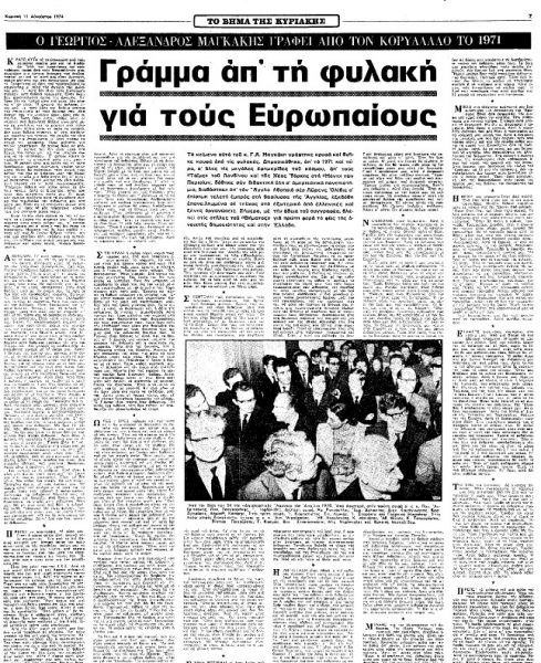 «ΤΟ ΒΗΜΑ», 11.8.1974, Ιστορικό Αρχείο «ΤΟ ΒΗΜΑ» & «ΤΑ ΝΕΑ»