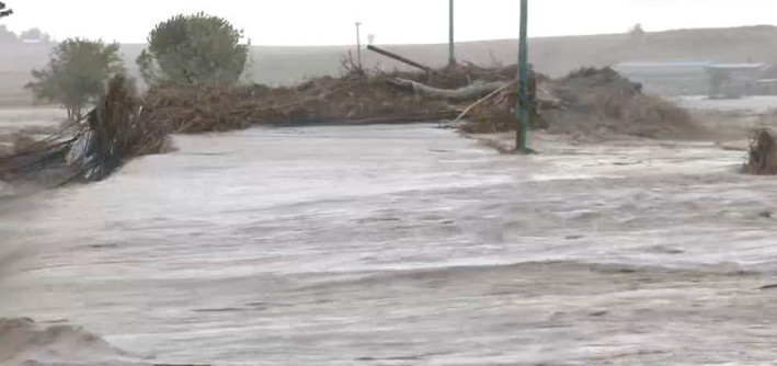 Από τον μεγάλο όγκο νερού έχει πλημμυρίσει ο χείμαρρος Γκουσμπασανιώτης και έχει παρασύρει ένα σπίτι.