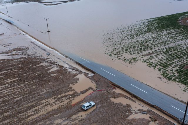Πλημμυρισμένο τοπίο στο χωριό Χάλκη Λάρισας