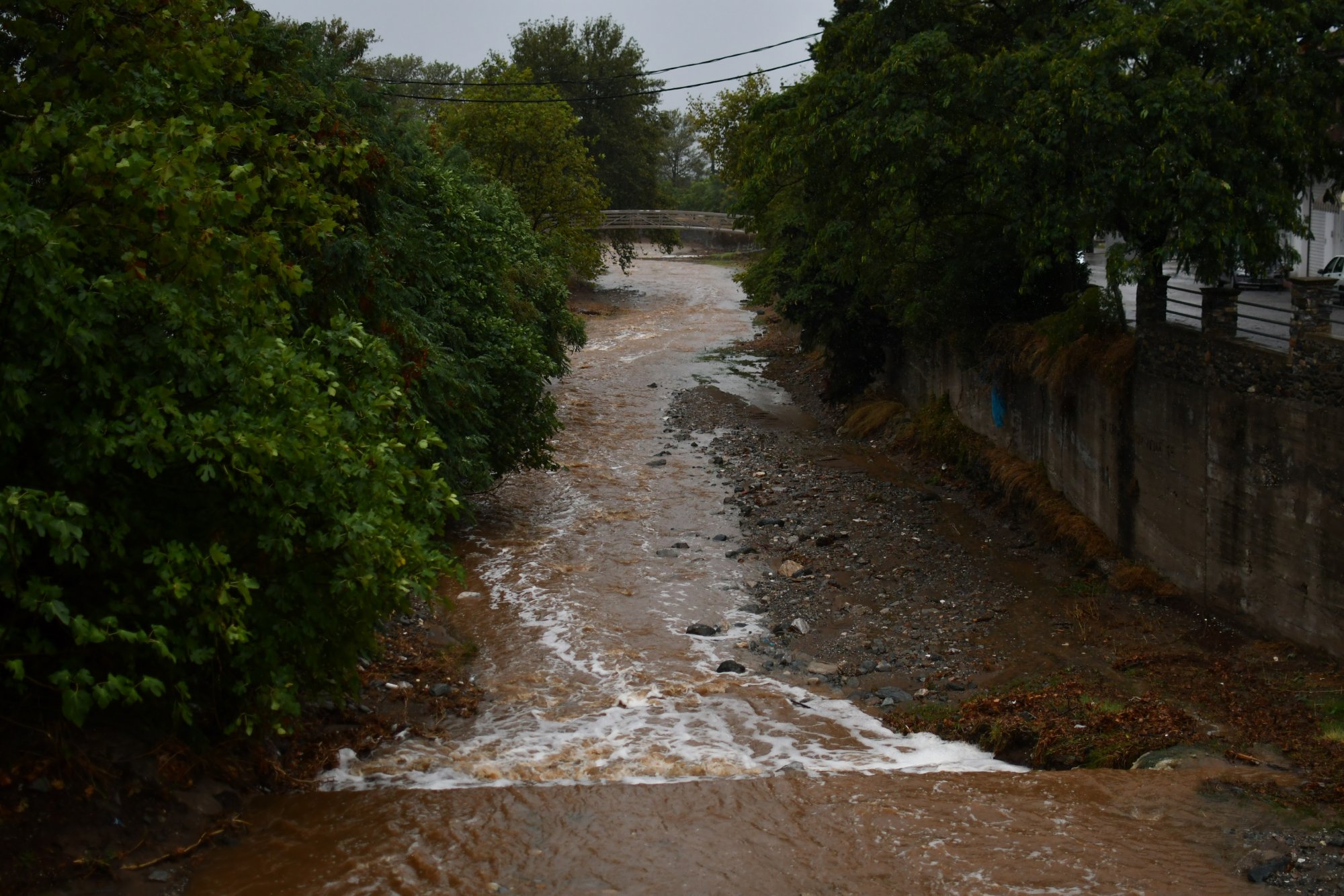Οι έντονες βροχοπτώσεις είχαν σαν αποτέλεσμα να πλημμυρίσουν αρκετά σπίτια καθώς, όπως αναφέρει το evima, φούσκωσε το ποτάμι που διαπερνά το χωριό.