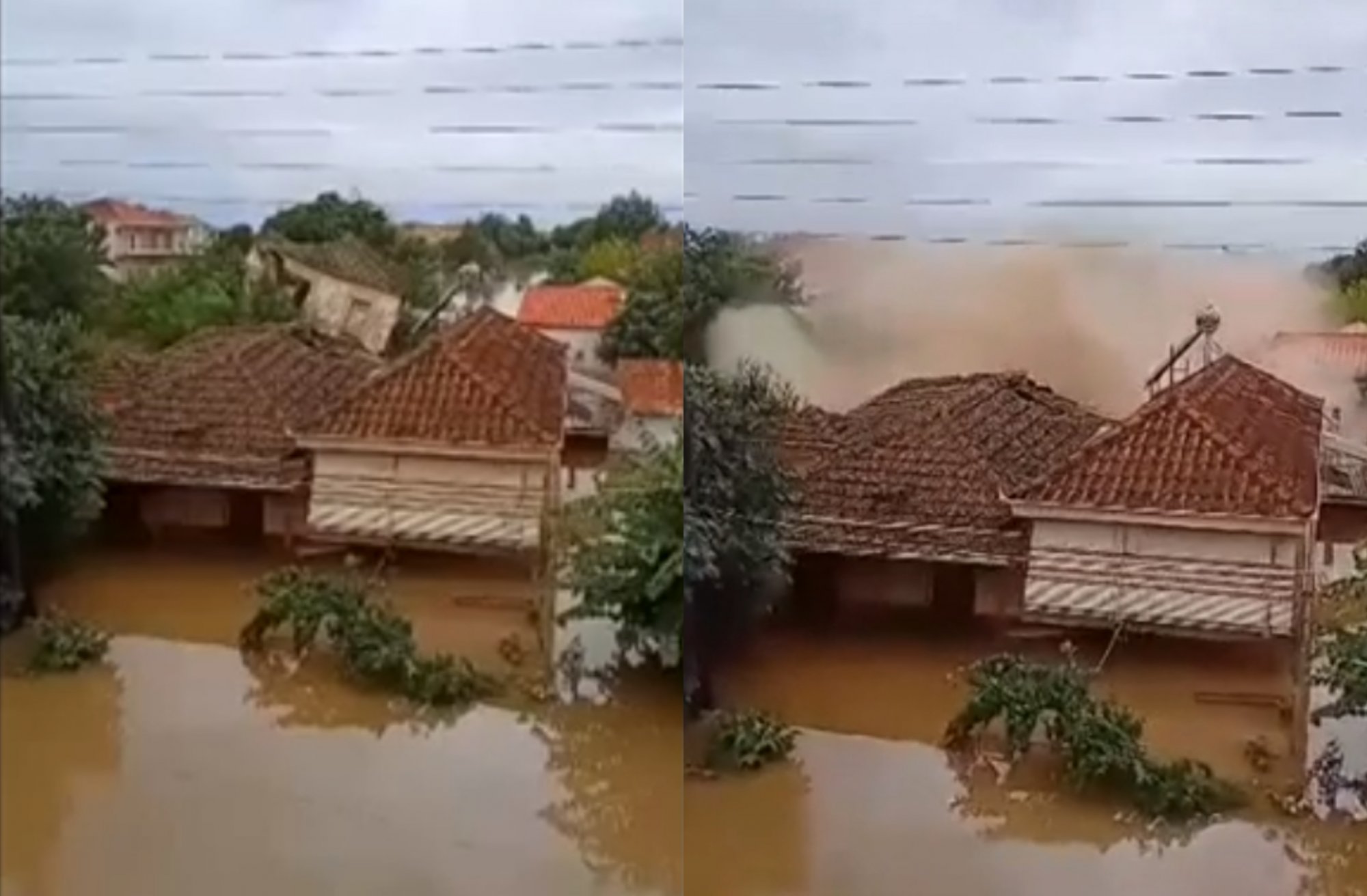 Ο όγκος του νερού είναι πρωτοφανής, με αποτέλεσμα σπίτια να καταρρέουν, όπως φαίνεται στο παρακάτω βίντεο που κατέγραψε κάτοικος με το κινητό του.