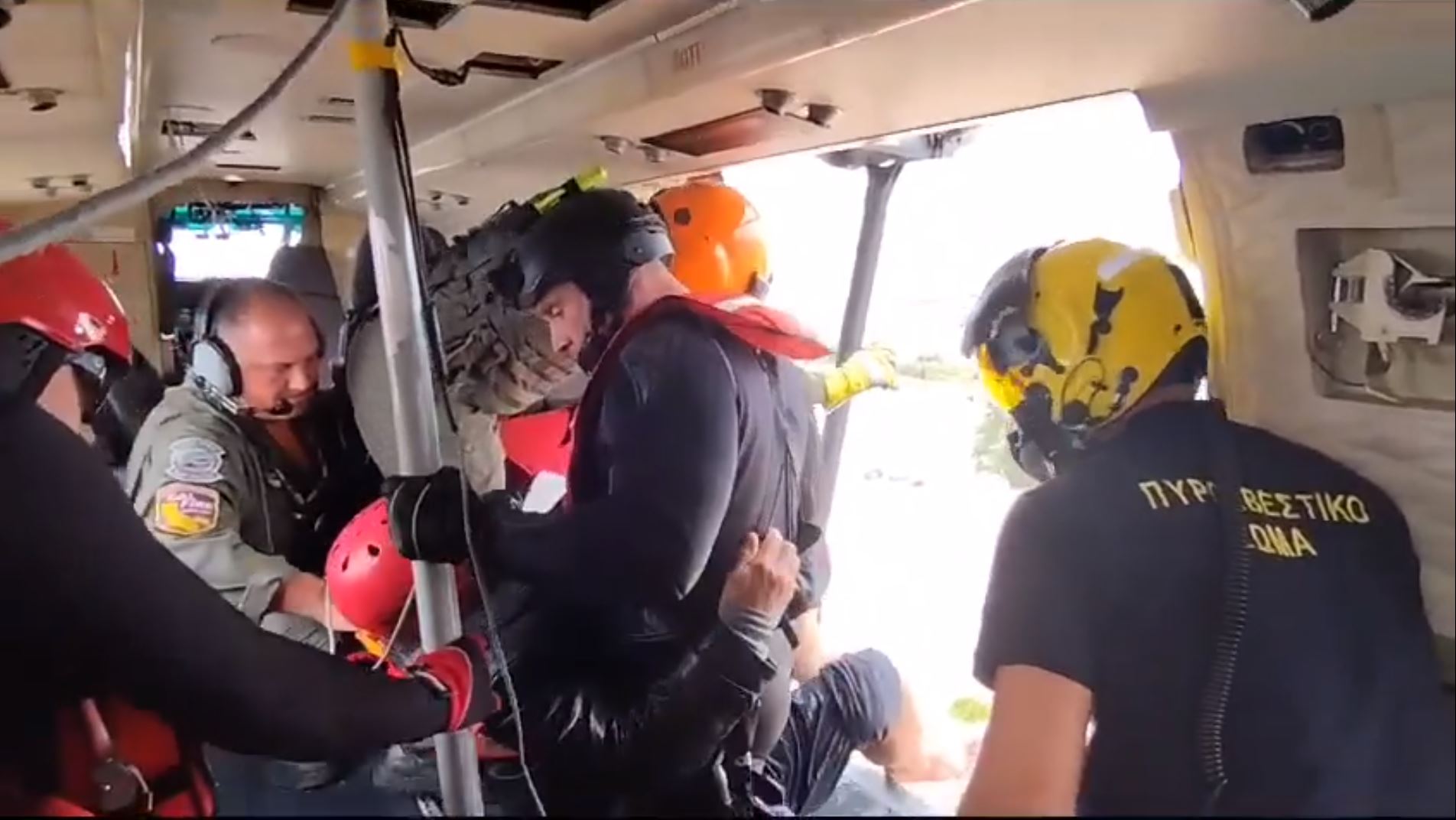 Επίσης, εναέριες διασώσεις πραγματοποιούν 10 ελικόπτερα, εκ των οποίων τα 3 έχουν διατεθεί από το Γ.Ε.ΕΘ.Α. και μέχρι στιγμής έχουν μεταφερθεί σε ασφαλές σημείο, από εναέριους διασώστες, 110 άτομα και συγκεκριμένα: