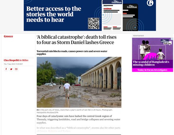 Κακοκαιρία Daniel: Παραμένουν πρώτο θέμα στον διεθνή Τύπο οι πλημμύρες στην Ελλάδα