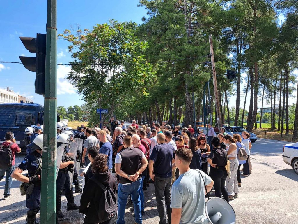 Η Αστυνομία μπλόκαρε τους διαδηλωτές στη Λάρισα