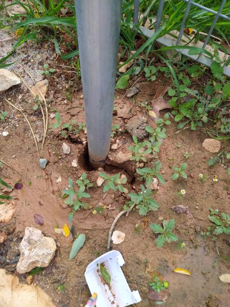 Η ταμπέλα όπως φαίνεται από τις φωτογραφίες δεν στηρίζεται σε κάποια τσιμεντένια βάση, αλλά μόνο στο έδαφος, το οποίο πιθανότατα λόγω των βροχοπτώσεων έχει διαβρωθεί στο σημείο της βάσης και από στιγμή σε στιγμή θα μπορούσε να αποκολληθεί, γεγονός το οποίο μπορεί να προκαλέσει ατύχημα.
