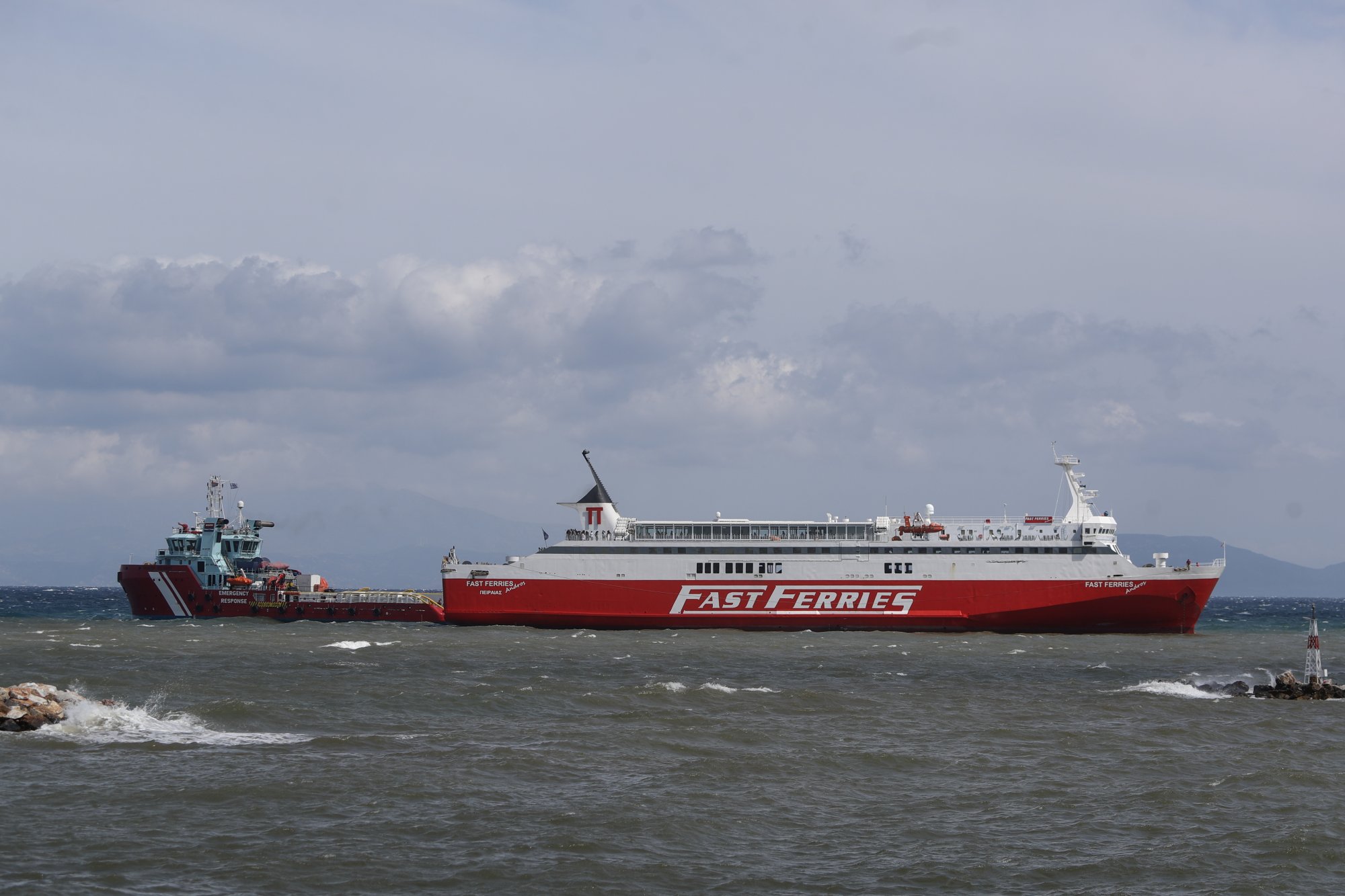 Πρόκειται για πλοία, τα οποία είναι γεμάτα επιβάτες και οχήματα και παραμένουν ανοιχτά του λιμανιού μπροστά από την κεντρική παραλία της Ραφήνας. Αυτήν την ώρα, γίνεται προσπάθεια να ξεμπλεχτούν οι άγκυρες για να ξεκινήσουν τα δρομολόγιά τους. Στην περιοχή πνέουν ισχυροί άνεμοι και έχουν δημιουργηθεί προβλήματα στα πλοία της γραμμής.