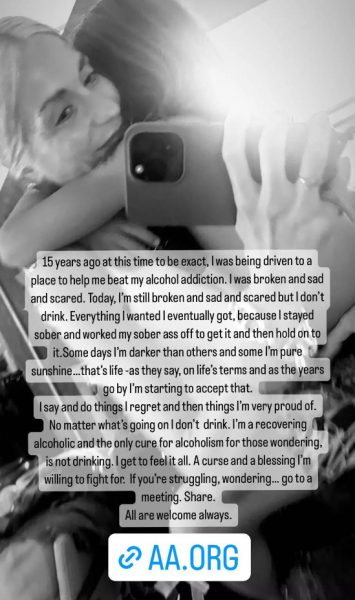 «Πριν από 15 χρόνια σαν σήμερα, πήγαινα σε ένα μέρος για να με βοηθήσουν να νικήσω τον εθισμό μου στο αλκοόλ. Ήμουν διαλυμένη, στενοχωρημένη και φοβόμουν. Σήμερα, εξακολουθώ να είμαι διαλυμένη, στενοχωρημένη και φοβισμένη, αλλά δεν πίνω. Ό,τι ήθελα τελικά το πήρα, γιατί έμεινα νηφάλια και δούλεψα για να διατηρήσω αυτή τη νηφαλιότητά μου. Κάποιες μέρες, νιώθω πιο σκοτεινή από άλλες και κάποιες νιώθω σαν αγνή λιακάδα. Αυτή είναι η ζωή – όπως λέμε- και όσο περνούν τα χρόνια, αρχίζω να το αποδέχομαι αυτό», σημείωσε η Σοφία Καρβέλα.