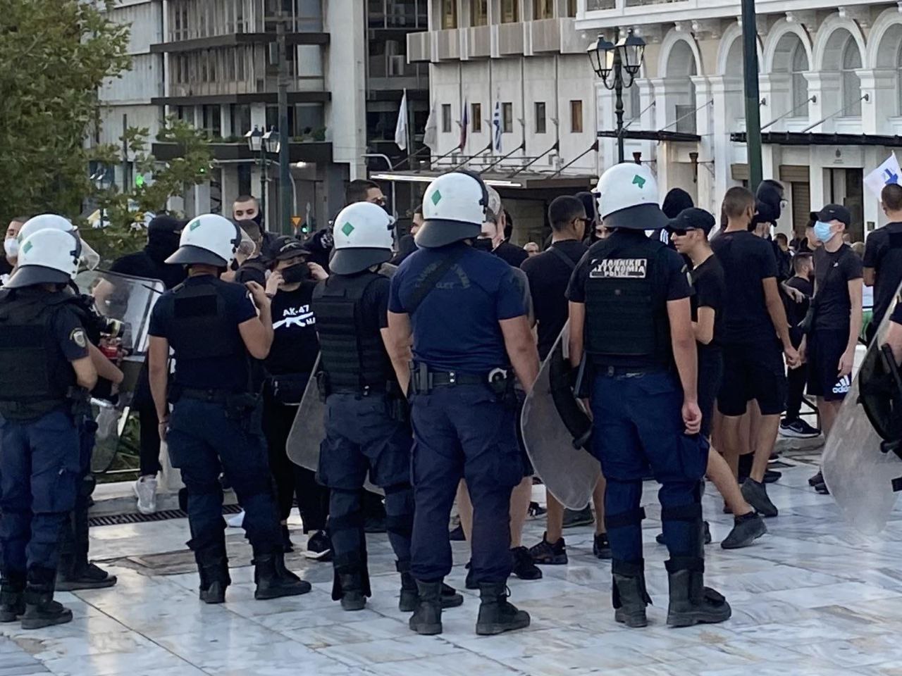 Όπως αναφέρουν μαρτυρίες τα συγκεκριμένα άτομα χαιρέτισαν ναζιστικά και άνοιξαν μια σημαία της Χρυσής Αυγής. Στη συνέχεια επιχείρησαν να μπουν στη συγκέντρωση πάνω στην πλατεία αλλά κάποιοι από τους συγκεντρωμένους τους απώθησαν.