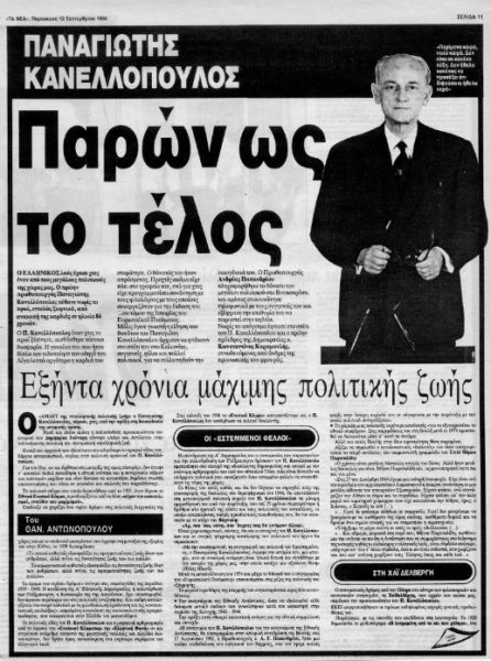 *Απόσπασμα από άρθρο που είχε δημοσιευτεί στην εφημερίδα «Τα Νέα» στις 12 Σεπτεμβρίου 1986, την επομένη του θανάτου του Παναγιώτη Κανελλόπουλου.