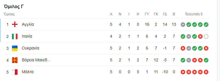 Η Ιταλία «έπιασε» την ομάδα του Ρεμπρόφ στη δεύτερη θέση και τους εφτά βαθμούς, με τους γηπεδούχους όμως να έχουν ένα ματς λιγότερο.