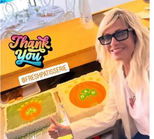 Η Άννα Βίσση ποζάρει μπροστά στις 2 τούρτες με την αγαπημένη τους ομάδα