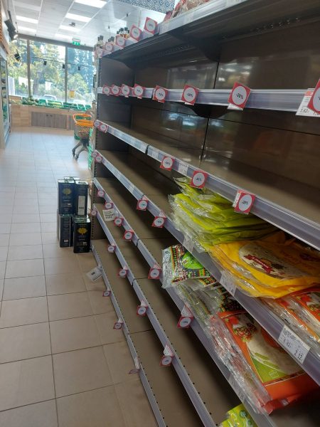 Τα ράφια στα σούπερ μάρκετ είναι σχεδόν άδεια.