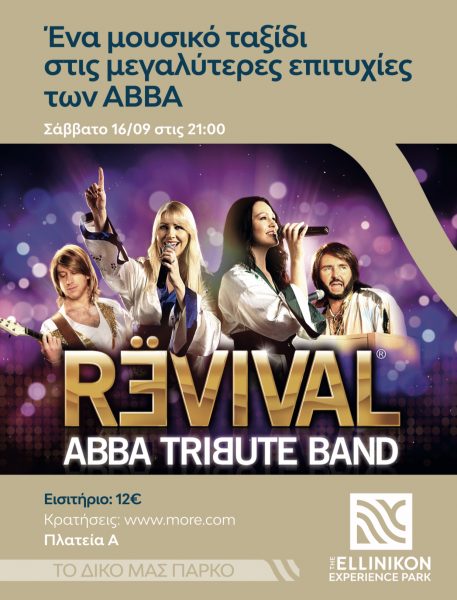 Το Σάββατο, 16 Σεπτεμβρίου το The Ellinikon Experience Park υποδέχεται την ABBA REVIVAL BAND για ένα μουσικό ταξίδι με τις μεγαλύτερες επιτυχίες του θρυλικού συγκροτήματος.