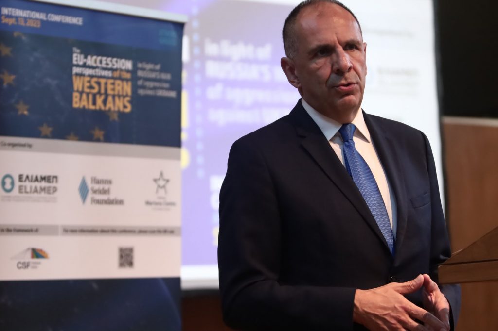 «H ευρωπαϊκή προοπτική των Δυτικών Βαλκανίων είναι θέμα ύψιστης σημασίας για την ελληνική διπλωματία», ανέφερε ο υπουργός Εξωτερικών, Γιώργος Γεραπετρίτης, στον εναρκτήριο χαιρετισμό του στο διεθνές συνέδριο που διοργανώνει το Ελληνικό Ίδρυμα Ευρωπαϊκής και Εξωτερικής Πολιτικής (ΕΛΙΑΜΕΠ), σε συνεργασία με τις δεξαμενές σκέψεις Wilfried Martens Centre for European Studies και Hanns-Seidel Stiftung, με θέμα την ευρωπαϊκή προοπτική των Δυτικών Βαλκανίων.