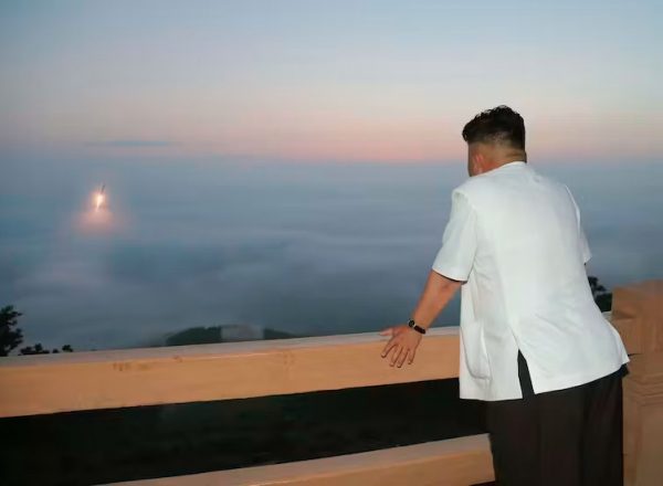 Ο βορειοκορεάτης ηγέτης παρακολουθεί την εκτόξευση βαλλιστικού πυραύλου (φωτογραφία EPA/KCNA)