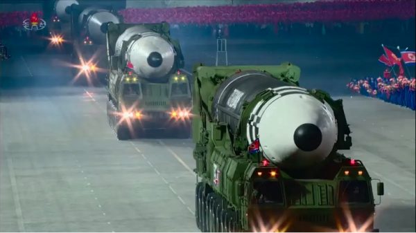 Διηπειρωτικοί βαλλιστικοί πύραυλοι της Βόρειας Κορέας κατά τη διάρκεια παρέλασης στην Πιονγιάνγκ (φωτογραφία KCNA)