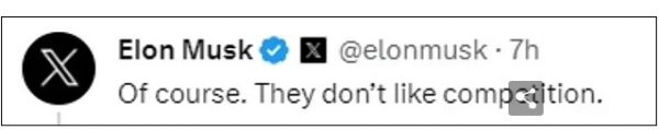 Το βίντεο που ανέβασε προσέλκυσε την υποστήριξη του δισεκατομμυριούχου Έλον Μασκ. «Φυσικά. Δεν τους αρέσει ο ανταγωνισμός» ήταν το σχόλιό του στο βίντεο του κωμικού στο Twitter/X.