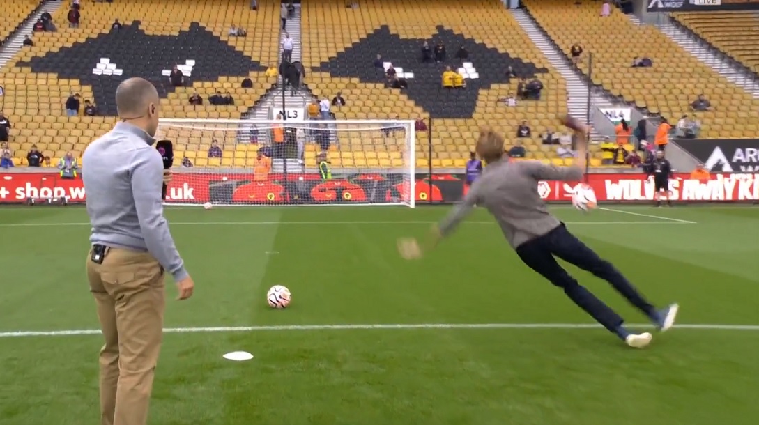 Στο pregame του «TNT Sports» για την αναμέτρηση της Λίβερπουλ με τη Γουλβς βλέπουμε τον παλαίμαχο Άγγλο επιθετικό Πίτερ Κράουτς να βρίσκεται στη σέντρα του γηπέδου μαζί με τον επίσης άλλοτε Άγγλο διεθνή, Τζο Κόουλ. Οι δυο τους είχαν βάλει στόχο να στείλουν την μπάλα στο οριζόντιο δοκάρι, με τον Κράουτς να τρώει μια επική τούμπα ενώ σούταρε!