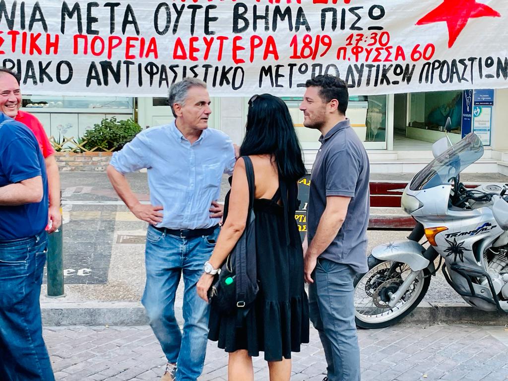 «Μπροστά στο μνημείο του Παύλου Φύσσα, με συντρόφισσες και συντρόφους από τη Νομαρχιακή Επιτροπή ΣΥΡΙΖΑ Πειραιά και τη Νεολαία Συριζα – Youth of Syriza, μπροστά στο πρόσωπο που συμβολίζει τον διαρκή αγώνα κατά του φασισμού και του νεοναζισμού, οι λέξεις για να έχουν νόημα θα πρέπει να υπενθυμίζουν ότι ο φασισμός κινείται ανάμεσά μας».