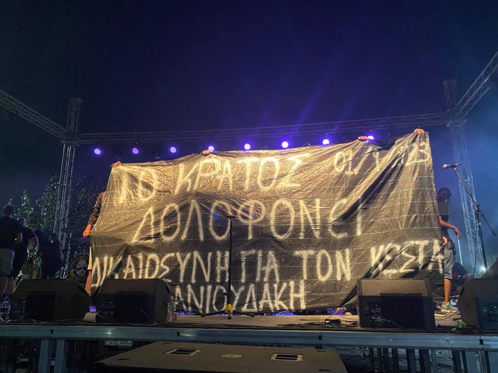 Πανό στη συναυλία για τα 10 χρόνια από τη δολοφονία του Παύλου Φύσσα