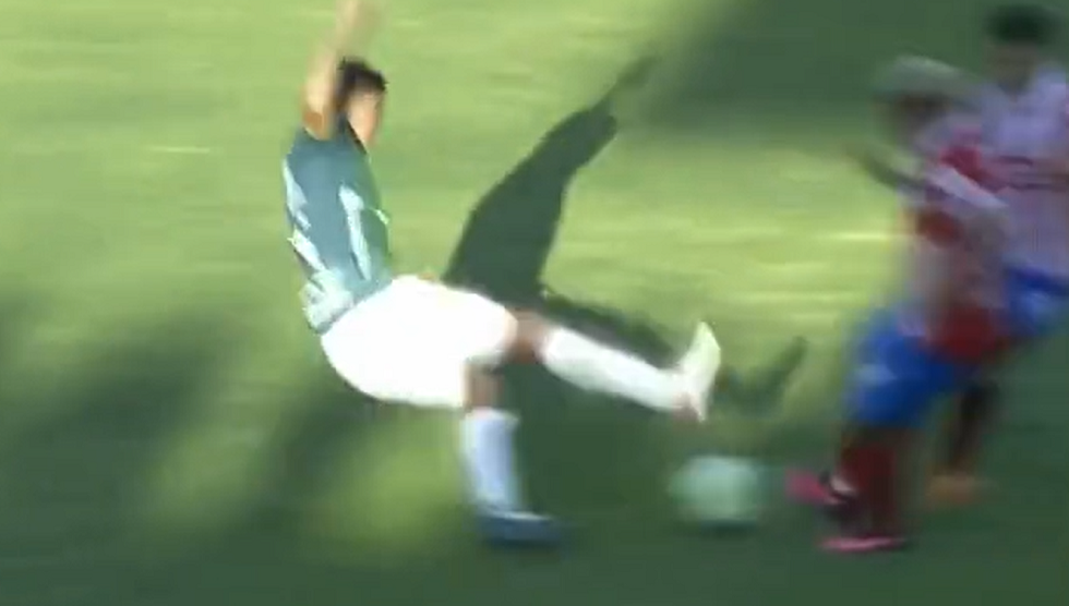 Πιο συγκεκριμένα, με το ματς να βρίσκεται στο 89ο λεπτό και ενώ το σκορ ήταν στο 0-1, ο παίκτης της Μάραθον έκανε μια προβολή με βουτιά, με αποτέλεσμα να βρει μόνο τα πόδια του αντιπάλου του, χρησιμοποιώντας τις τάπες του παπουτσιού του.