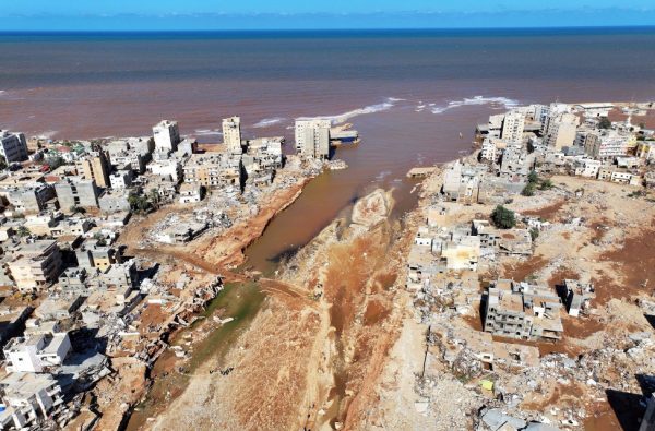 Πολλές συνοικίες στην πόλη Ντέρνα παρασύρθηκαν από τα νερά αφού τη νύκτα της προηγούμενης Κυριακής έσπασαν τα δύο φράγματα του ποταμού που διασχίζει την πόλη λόγω των σφοδρών βροχοπτώσεων που προκάλεσε η καταιγίδα Daniel.