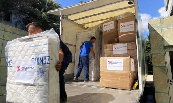 «Παραλάβαμε την ανθρωπιστική βοήθεια την οποία μας έστειλε ο Όμιλος Ιατρικού Αθηνών και περιλαμβάνει κρεβάτια, στρώματα και μαξιλάρια. Το υλικό θα μοιραστεί στα χωριά μας και όπου αλλού παρίσταται σχετική ανάγκη ώστε να επιστρέψουν οι άνθρωποι στα σπίτια τους και να κοιμούνται μέσα σε αυτά.