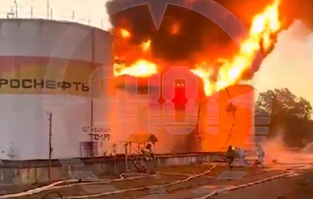 Στο κανάλι ειδήσεων από την Ρωσία Mash, στην εφαρμογή ανταλλαγής μηνυμάτων Telegram αναρτήθηκε ένα βίντεο μιας μεγάλης στήλης καπνού πάνω από την πόλη. Σύμφωνα με την ίδια ανάρτηση, πριν από το ξέσπασμα της φωτιάς ακούστηκαν εκρήξεις.