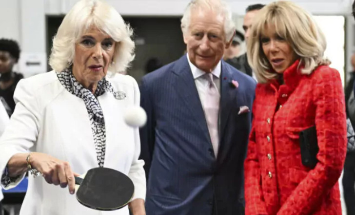 Το βασιλικό ζευγάρι βρέθηκε σήμερα στο Σεν Ντενί στο Παρίσι και η Βασίλισσα Καμίλα απέδειξε μια άλλη της ικανότητα. Συγκεκριμένα, κατά την επίσκεψη στο χωριό του Παγκοσμίου Κυπέλου Ράγκμπι η Βασίλισσα Καμίλα και η Μπριζίτ Μακρόν βλέποντας ένα τραπέζι του πινγκ πονγκ πήραν από μια ρακέτα και άρχισαν να παίζουν.